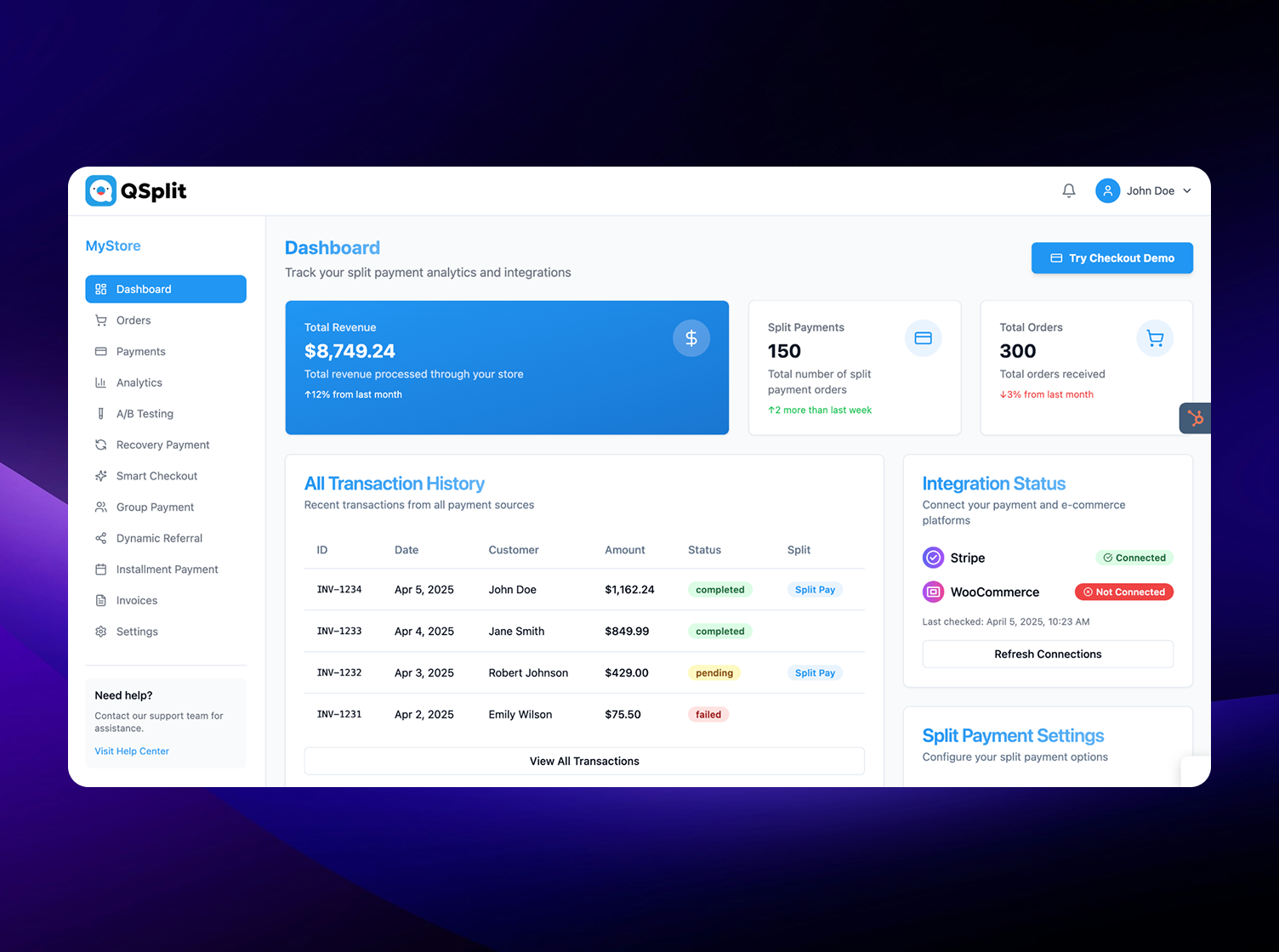 Combined with secure payment processing, granular transaction tracking, and advanced refund handling, the solution provides QSplit with a scalable, conversion-driven payment foundation built for growth. Our modular approach ensures the platform can evolve alongside QSplit’s growth, enabling rapid expansion across new eCommerce ecosystems and payment providers.